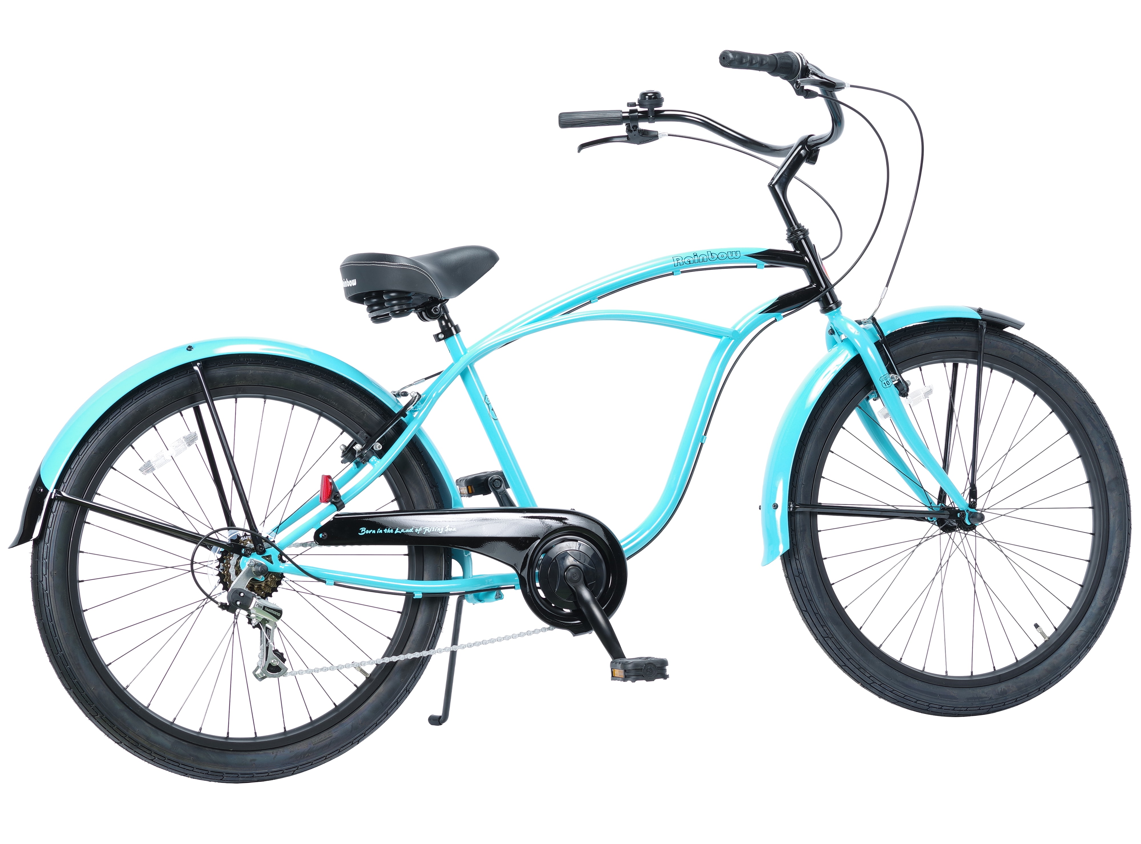 RAINBOW BEACH CRUISERの7段ギアつきモデル。外装7段の装備以上の変更は最小限にとどめました。ブレーキはよく効くVブレーキを選びました。
